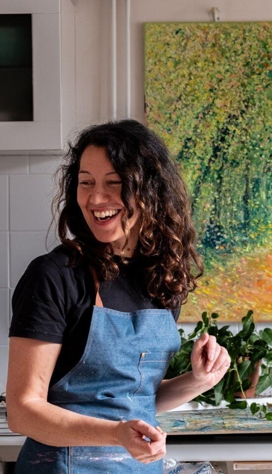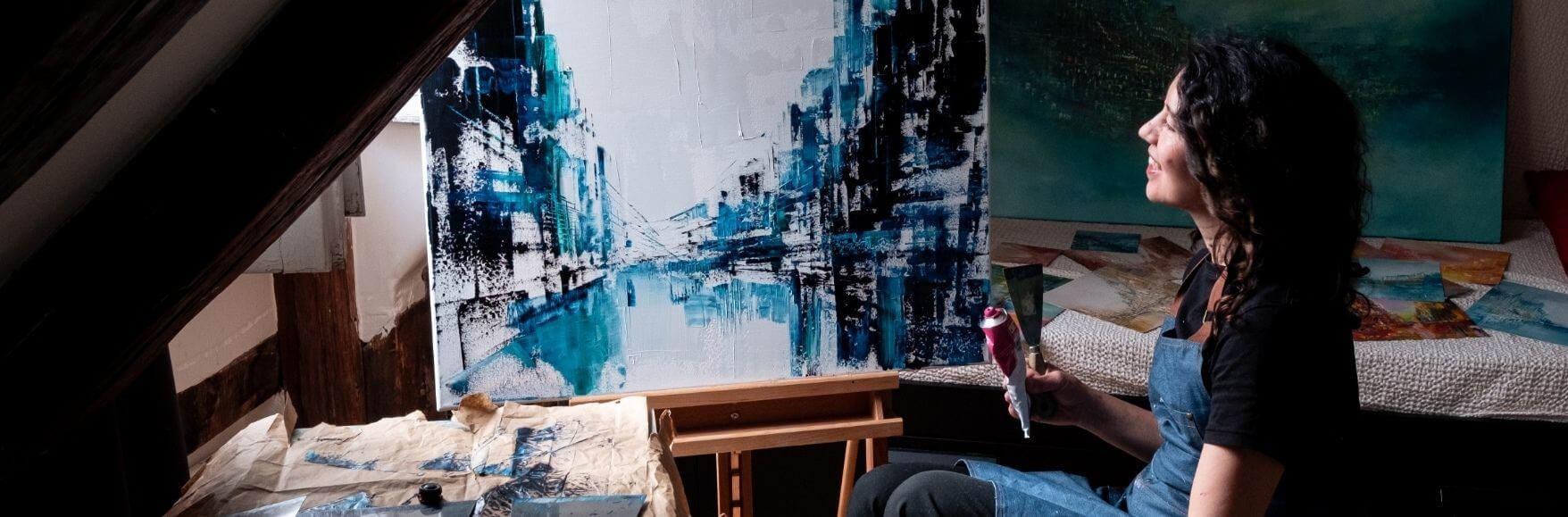 Elle étudie le dessin et favorise la peinture figurative dans un premier temps. La lumière de la côte Bretonne toujours changeante et capricieuse est une source d'inspiration et de désirs. Après avoir peint d'après nature, puis d'après photos, elle décide de laisser libre cours à son imagination et de faire confiance aux seules couleurs, à la seule matière. Elle s'oriente définitivement vers l'abstrait