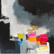 L'artiste a utilisé les techniques Acrylique, Carton, Collage, Feuille d'or, Pastel pour créer cette peinture petit format sur Toile de style Abstrait.