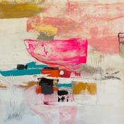L'artiste a utilisé les techniques Acrylique, Collage, Feuille d'or pour créer cette peinture petit format sur Carton de style Abstrait.