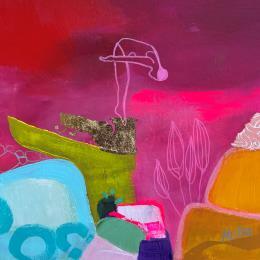 L'artiste a utilisé les techniques Acrylique, Collage, Feuille d'or, Papier pour créer cette peinture petit format sur Carton de style Abstrait.