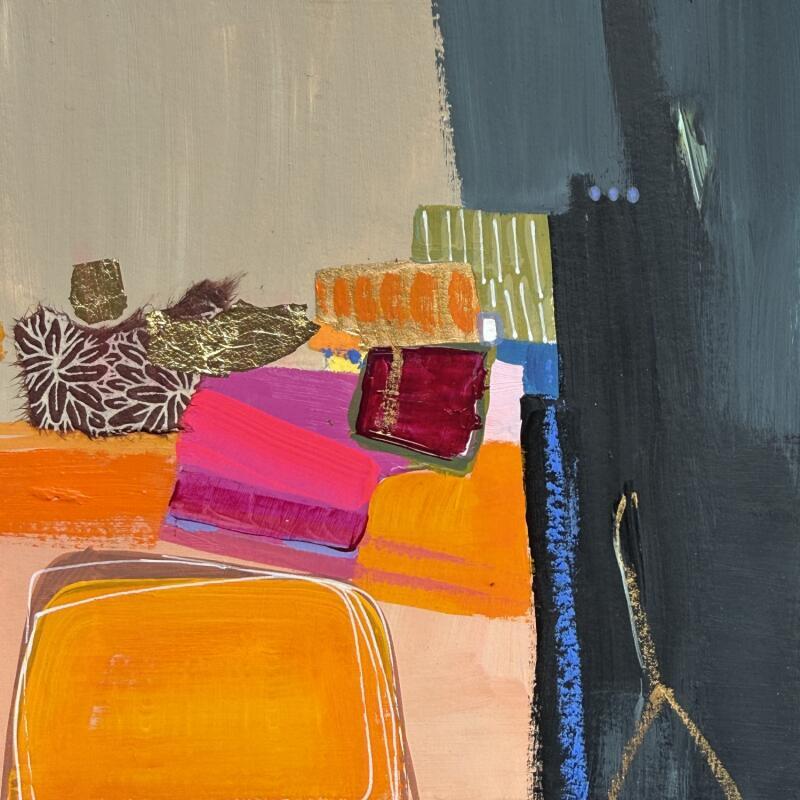 L'artiste a utilisé les techniques Acrylique, Carton, Collage, Feuille d'or, Pastel pour créer cette peinture petit format sur Carton de style Abstrait.