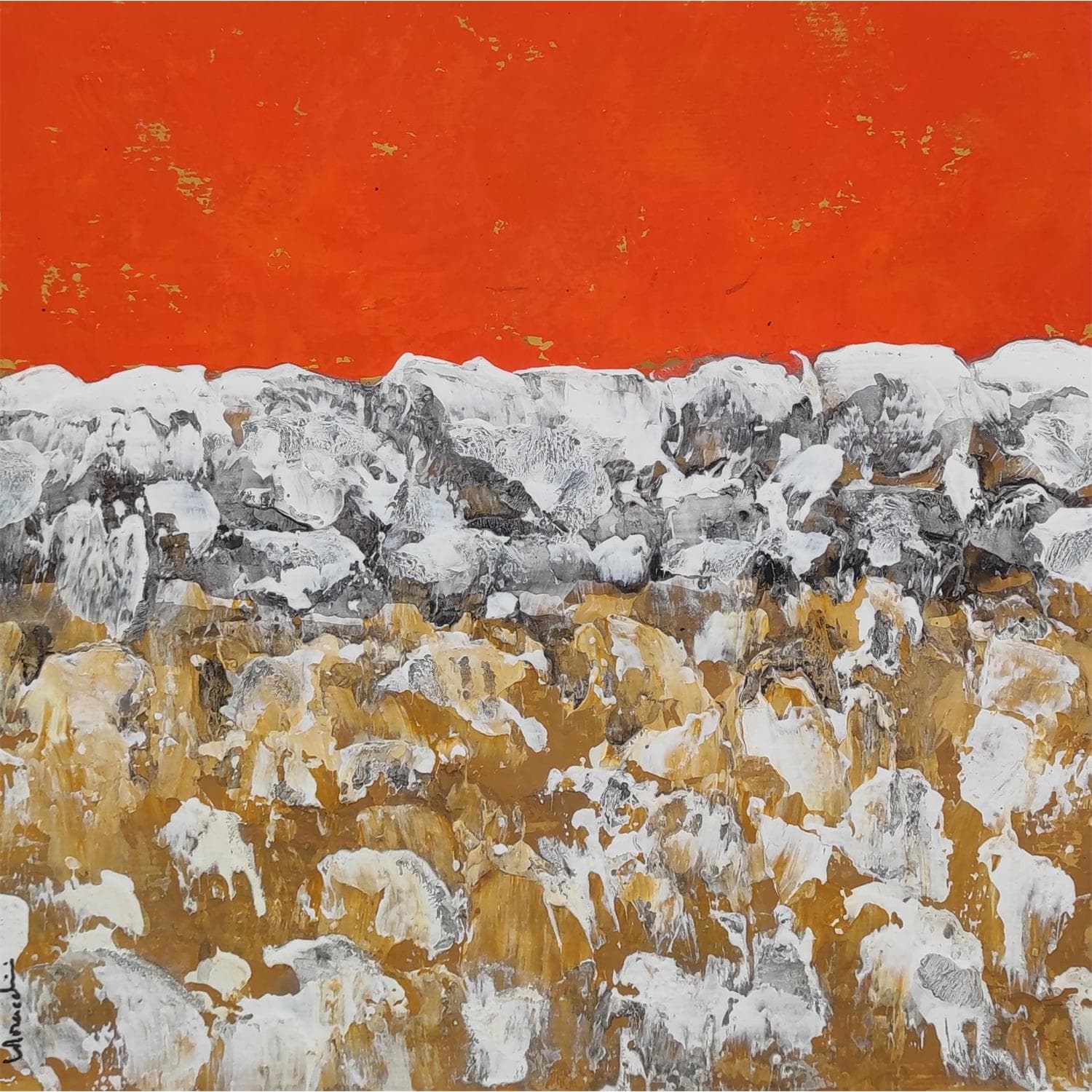 L'artiste a utilisé la technique Acrylique pour créer cette peinture petit format sur papier de style Abstrait.