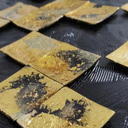 L'artiste a utilisé les techniques Acrylique, Bois, Collage, Laque, Métal, Résine pour créer cette peinture grand format sur Dibon de style Abstrait sur le thème Minimaliste.