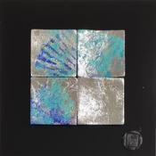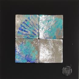 L'artiste a utilisé les techniques Acrylique, Bois, Collage, Résine, Feuille d'argent pour créer cette peinture petit format sur Dibon de style Abstrait sur le thème Minimaliste.