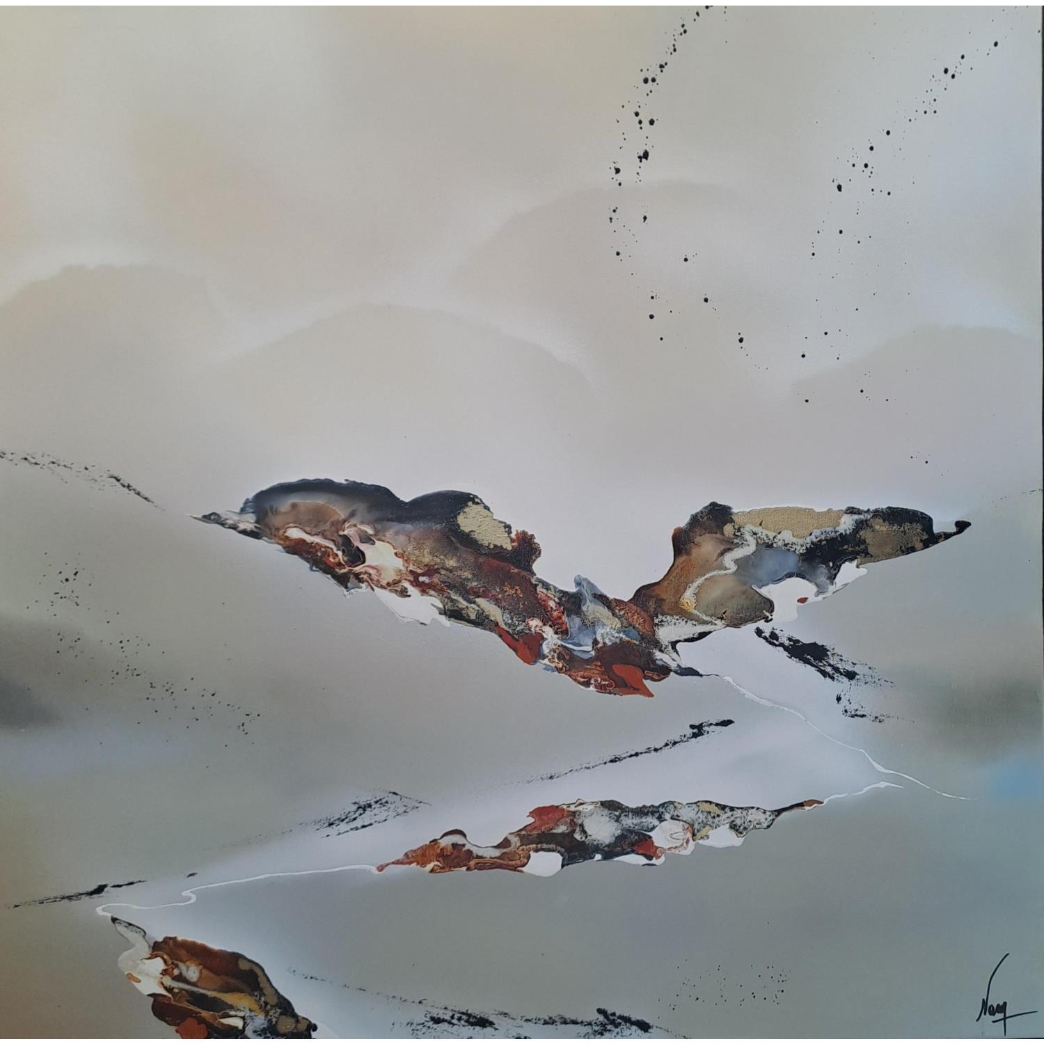 L'artiste a utilisé les techniques Acrylique, Encre pour créer cette peinture grand format sur Toile de style Abstrait.