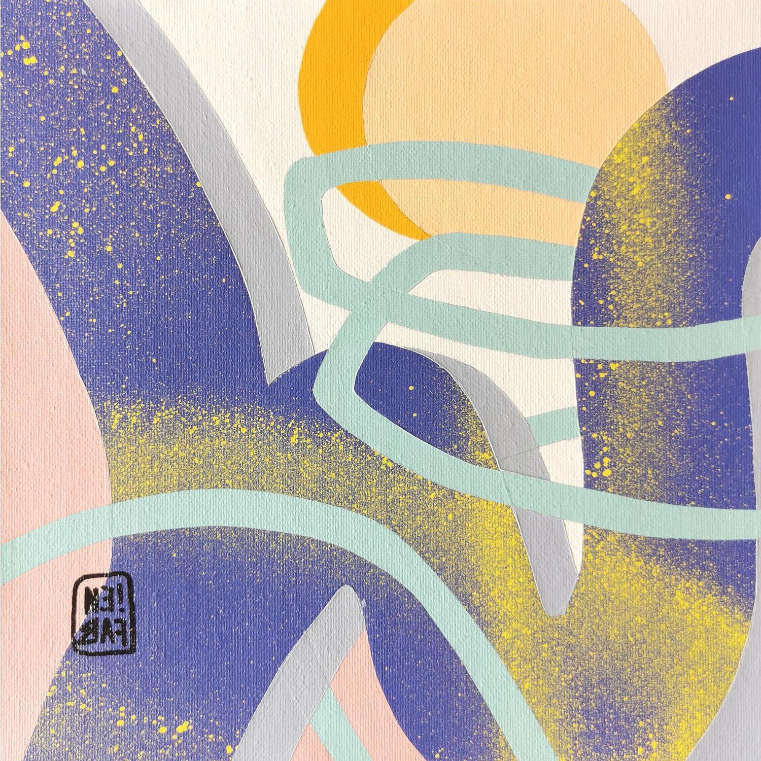 L'artiste a utilisé les techniques Acrylique, Graffiti pour créer cette peinture petit format sur Toile de style Abstrait sur le thème Paysages.