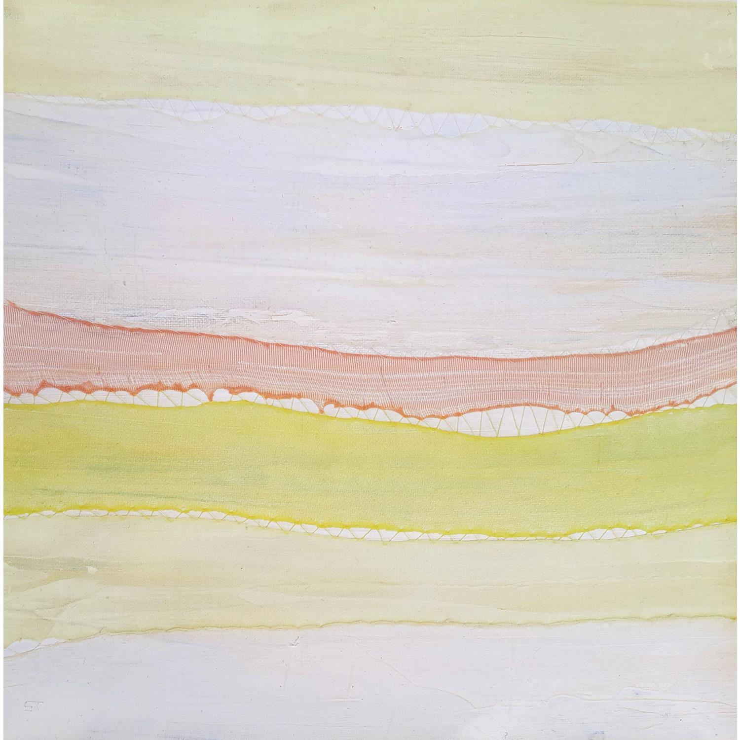 L'artiste a utilisé les techniques Acrylique, Textile pour créer cette peinture petit format sur Toile de style Abstrait sur le thème Paysages.