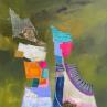 L'artiste a utilisé les techniques Acrylique, Collage, Feuille d'or, Papier, Pastel pour créer cette peinture petit format sur Carton de style Abstrait sur le thème Portraits.