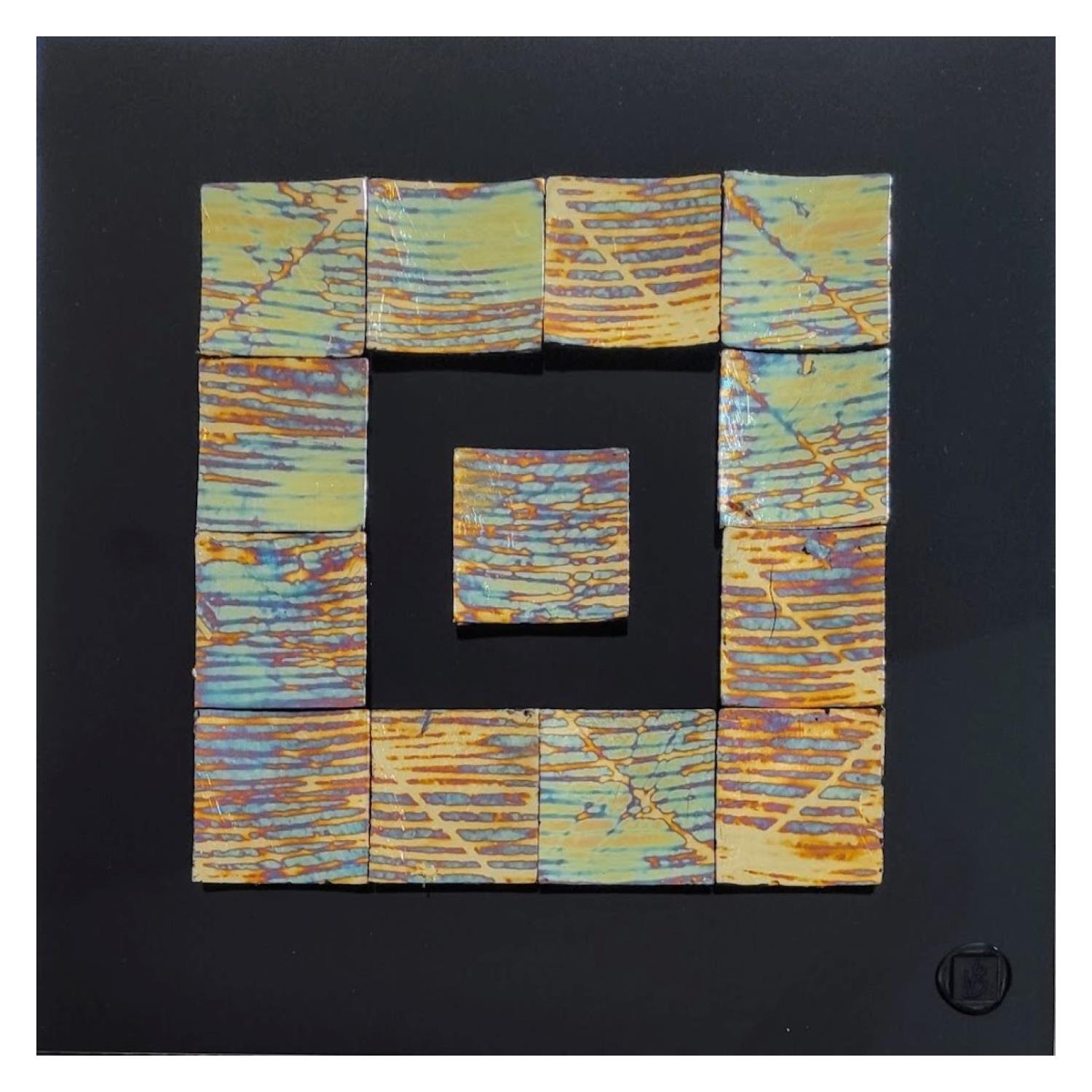 L'artiste a utilisé les techniques Bois, Collage, Métal, Résine pour créer cette peinture petit format sur Dibon de style Abstrait sur le thème Minimaliste.
