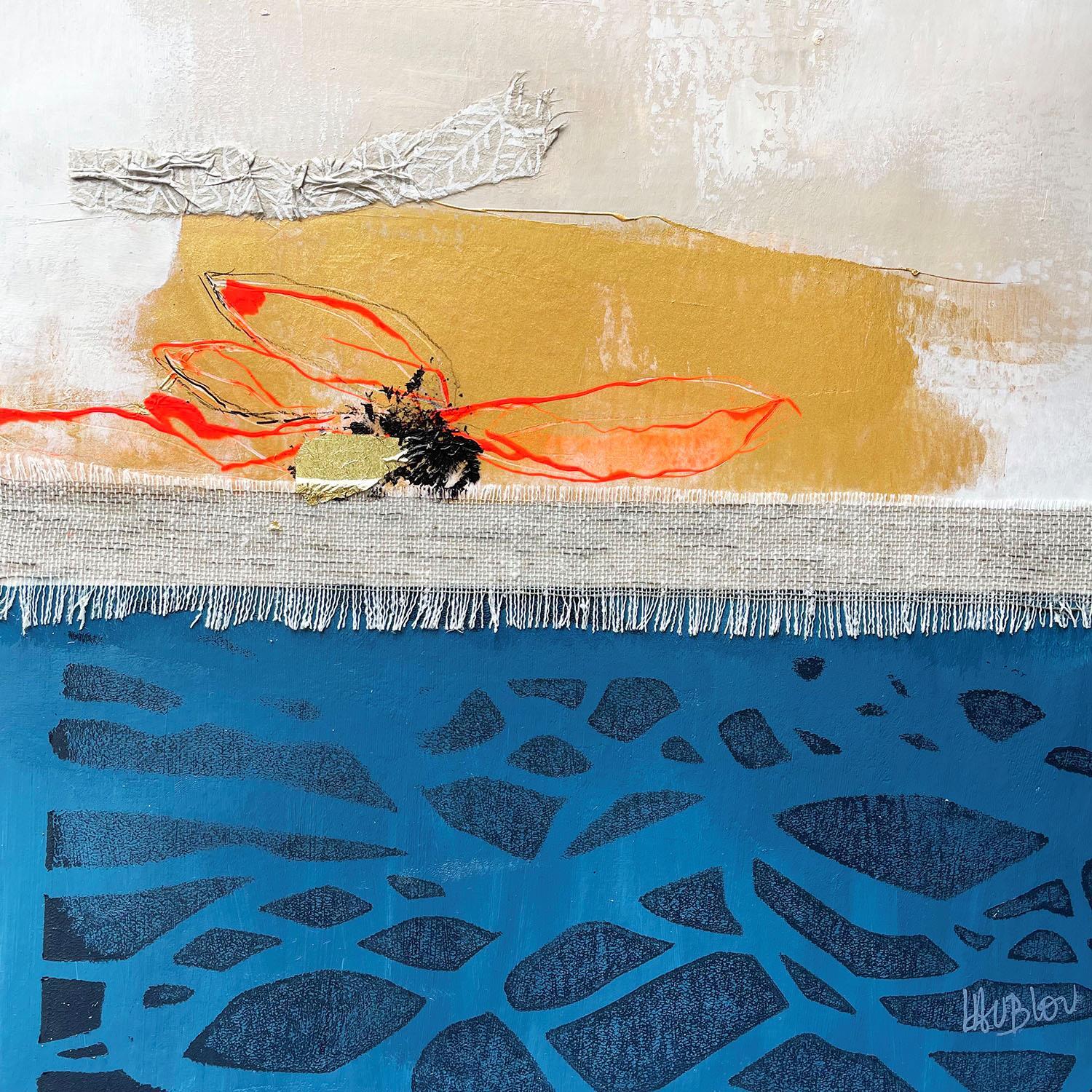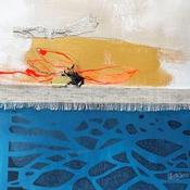 L'artiste a utilisé les techniques Carton, Collage, Textile, Feuille d'or, Papier, Acrylique pour créer cette peinture petit format sur Carton de style Abstrait sur le thème Paysages.