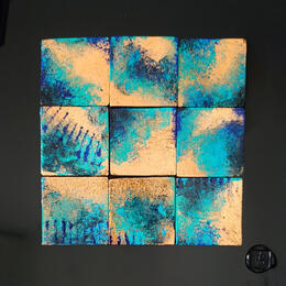 L'artiste a utilisé la technique Collage pour créer cette peinture petit format sur Dibon de style Abstrait sur le thème Minimaliste.
