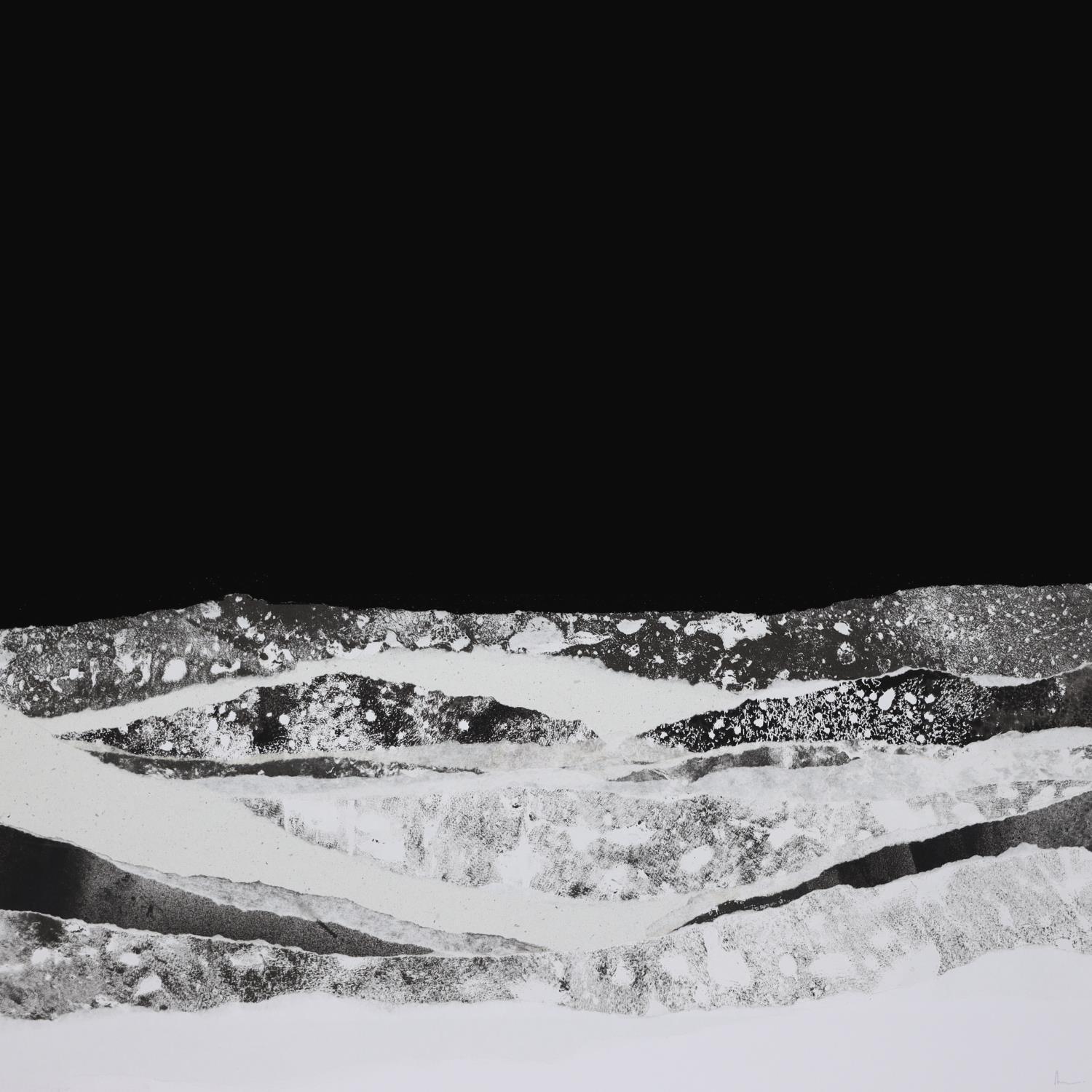 L'artiste a utilisé la technique Collage pour créer cette peinture petit format sur Papier de style Abstrait sur les thèmes Paysages, Minimaliste, Noir & blanc.