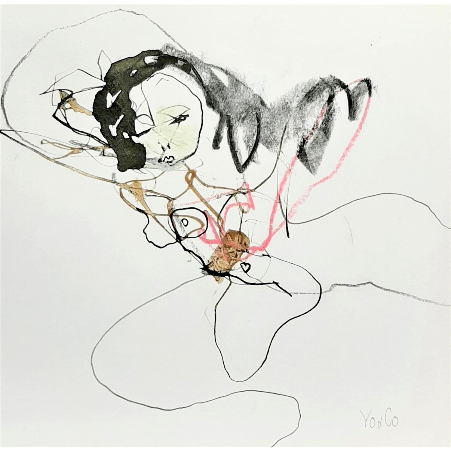 L'artiste a utilisé la technique Encre pour créer cette peinture petit format sur toile de style Abstrait sur les thèmes noir & blanc, nu.