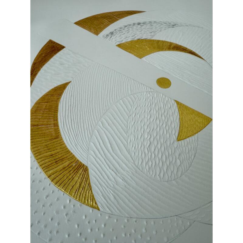 L'artiste a utilisé différentes techniques de sculpture sur papier pour créer cette peinture grand format au style singulier.