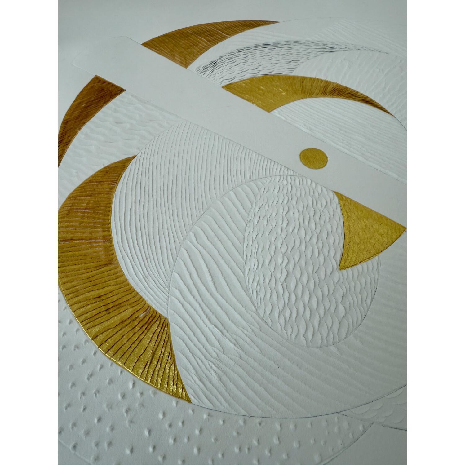 Peinture Clock Wise par Caitrin Alexandre | Tableau Abstrait Architecture Minimaliste Encre Feuille d'or