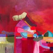 L'artiste a utilisé les techniques Feuille d'or, Papier, Pastel, Acrylique, Collage pour créer cette peinture petit format sur Carton de style Abstrait sur le thème Paysages.