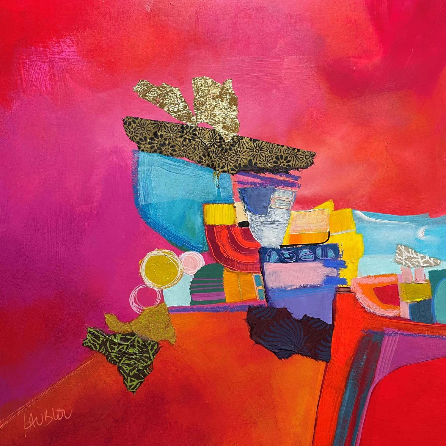 L'artiste a utilisé les techniques Feuille d'or, Acrylique, Carton, Collage pour créer cette peinture petit format sur Carton de style Abstrait sur le thème Paysages.