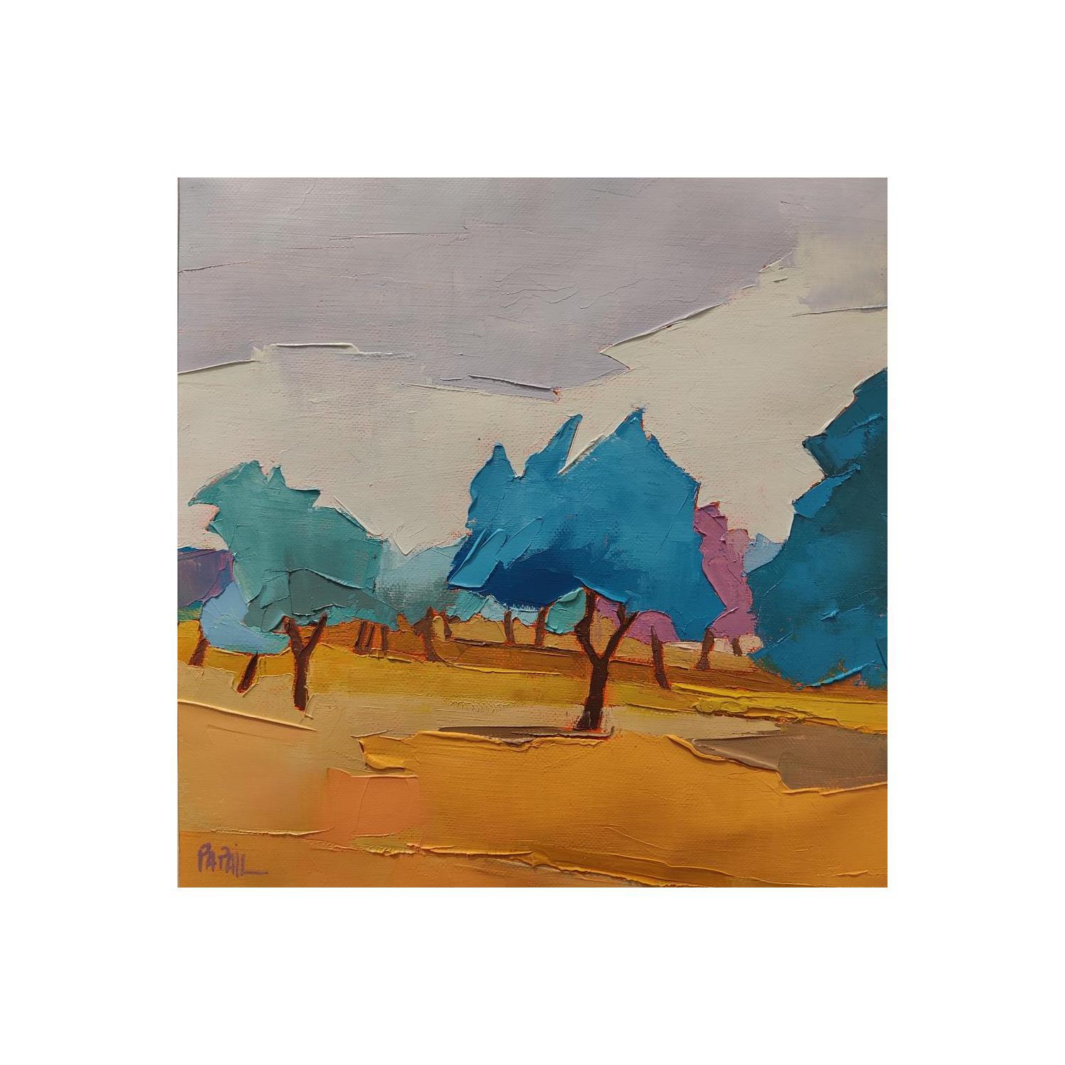 Le verger en bleuPeinture Le verger en bleu par PAPAIL | Tableau Abstrait Paysages Huile