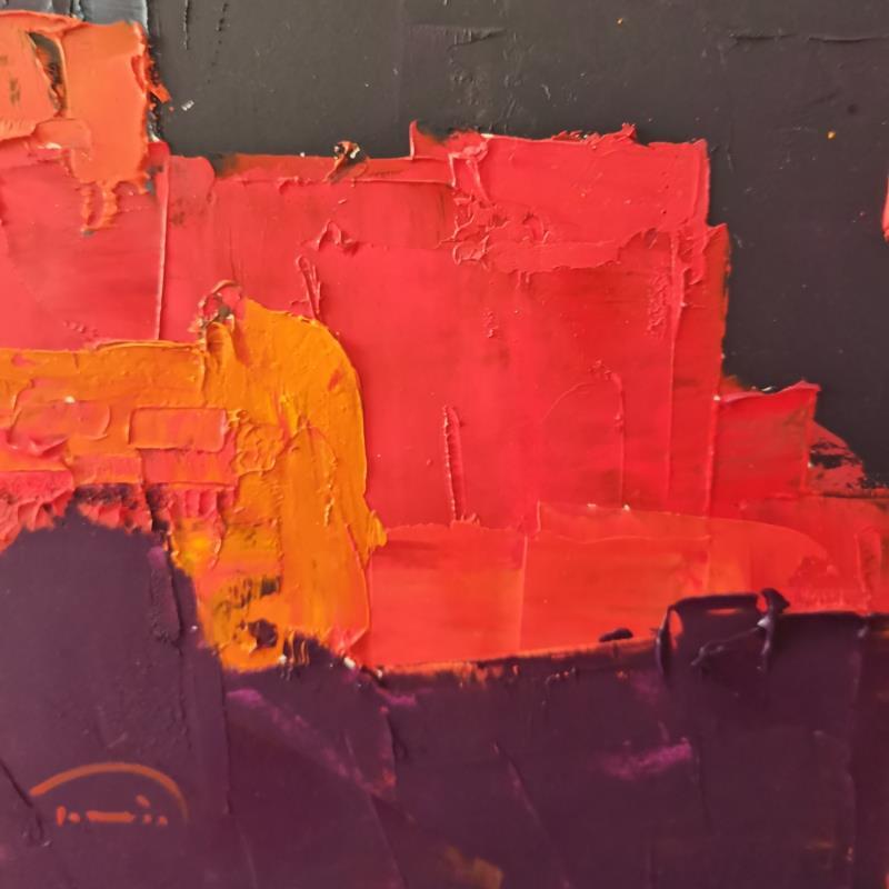 L'artiste a utilisé la technique Huile pour créer cette peinture petit format sur Papier de style Abstrait sur les thèmes Paysages, Scènes de vie.