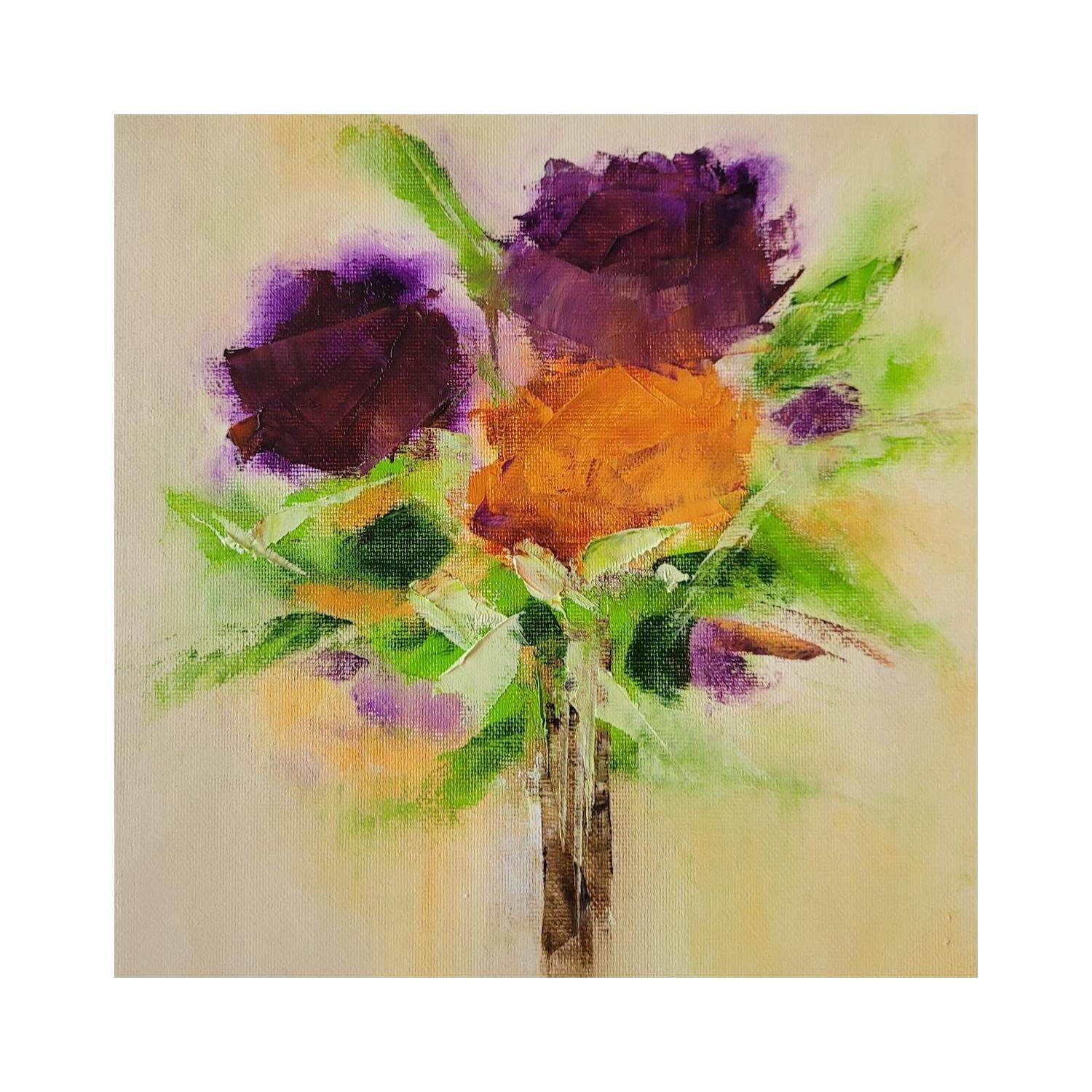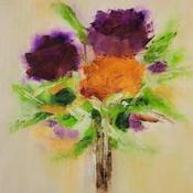 Bouquet Violet OrangePeinture Bouquet Violet Orange par Chebrou de Lespinats Nadine | Tableau Abstrait Scènes de vie Natures mortes Huile
