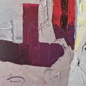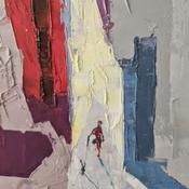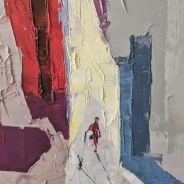 L'artiste a utilisé la technique Huile pour créer cette peinture petit format sur Toile de style Abstrait sur les thèmes Scènes de vie, Urbain.