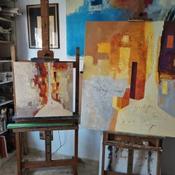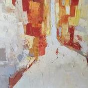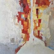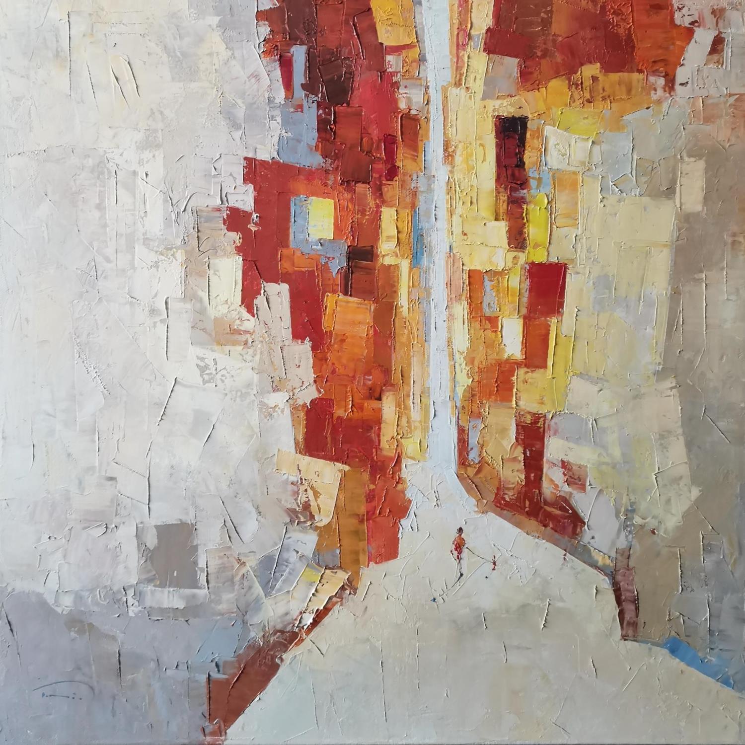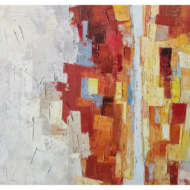 L'artiste a utilisé la technique Huile pour créer cette peinture grand format sur Toile de style Abstrait sur les thèmes Urbain, Scènes de vie, Société.