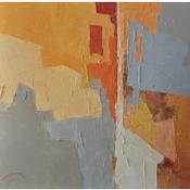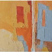 L'artiste a utilisé la technique Huile pour créer cette peinture petit format sur Papier de style Abstrait sur le thème Urbain.