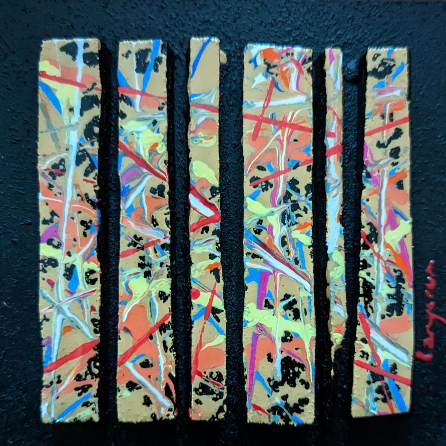L'artiste a utilisé les techniques Résine, Bois, Acrylique pour créer cette peinture petit format sur Bois de style Abstrait.
