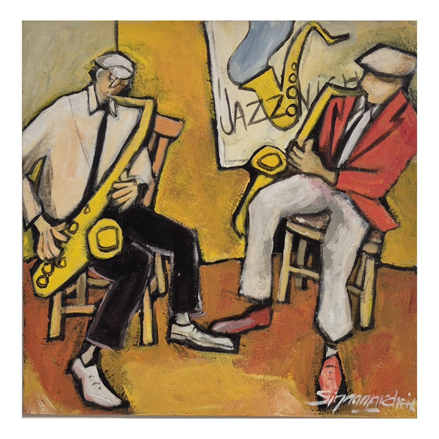 Cette oeuvre d'art contemporain unique et originale "Duo de Sax" a été réalisée par l'artiste contemporain Signamarcheix Bernard.