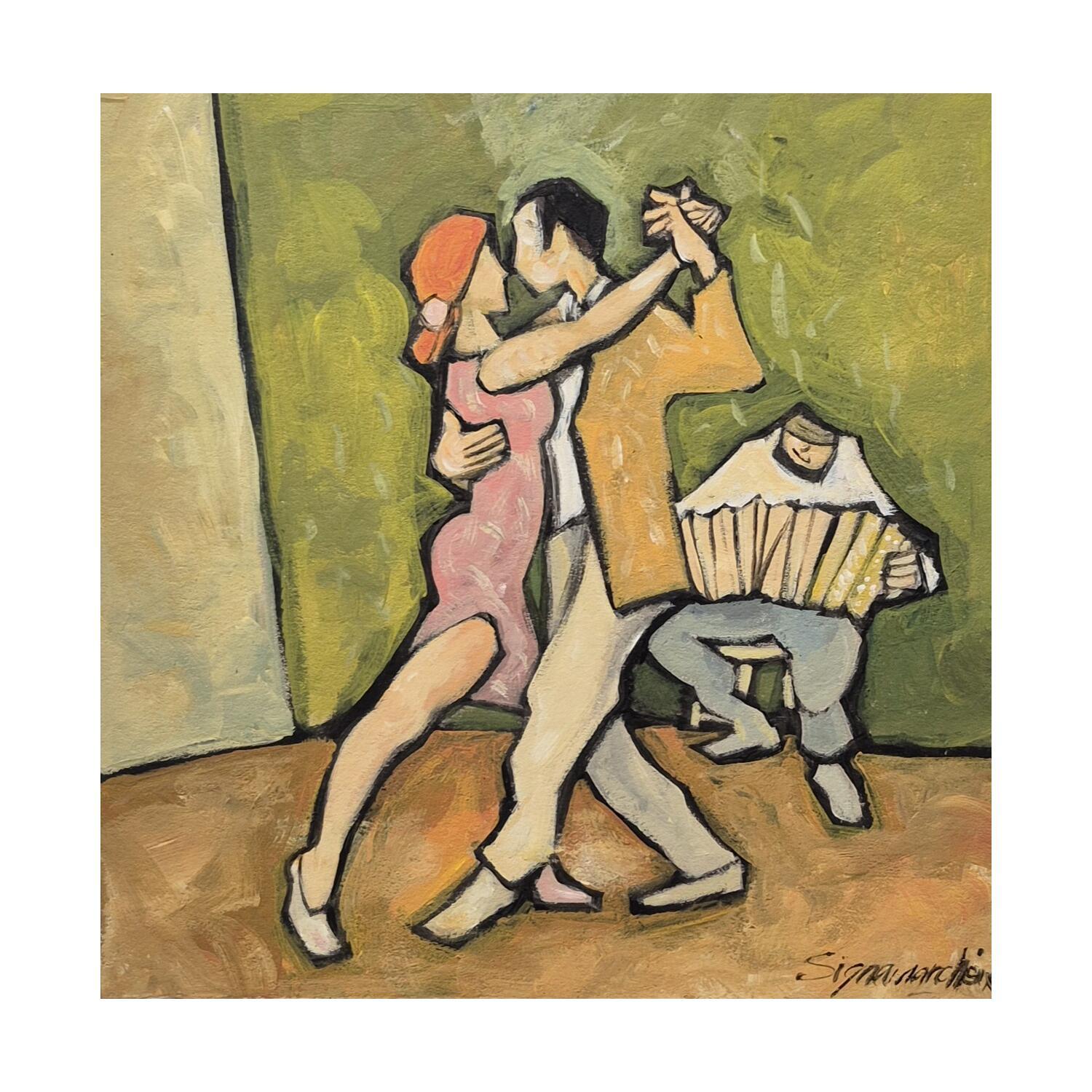 Peinture Tango coin de rue par Signamarcheix Bernard | Tableau Art naïf Acrylique Encre Pastel