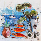 Cette oeuvre d'art contemporain unique et originale "Les trois rougets" a été réalisée par l'artiste contemporain Colombo Cécile.