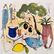 L'artiste a utilisé les techniques Acrylique, Aquarelle, Collage, Encre, Pastel pour créer cette peinture petit format sur Toile de style Art naïf sur les thèmes Nature, Natures mortes, Paysages.