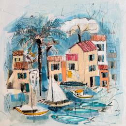 L'artiste a utilisé les techniques Acrylique, Aquarelle, Bois, Collage, Encre, Pastel pour créer cette peinture petit format sur Bois de style Art naïf sur le thème Paysages.