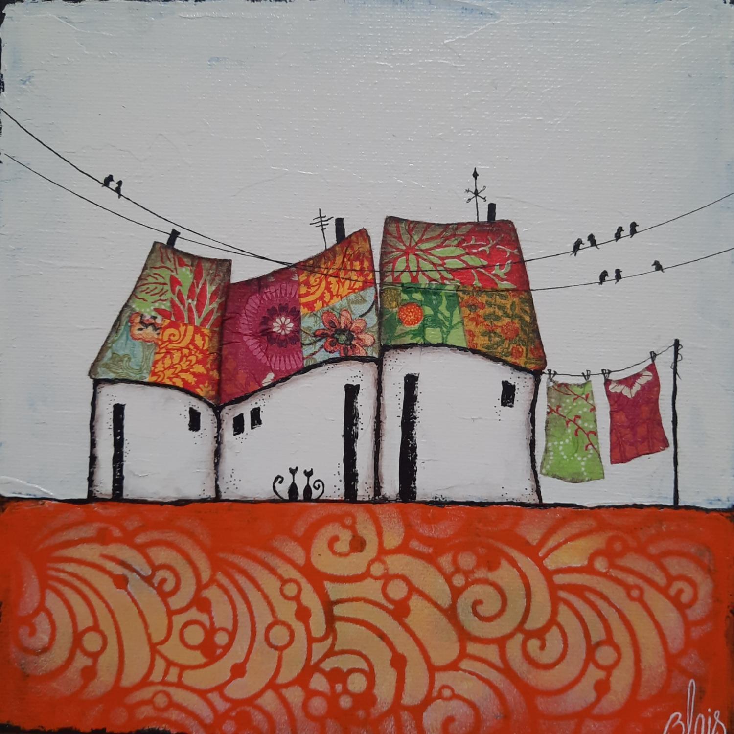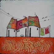 L'artiste a utilisé les techniques Acrylique, Collage pour créer cette peinture petit format sur Carton toilé de style Art naïf sur le thème Paysages.