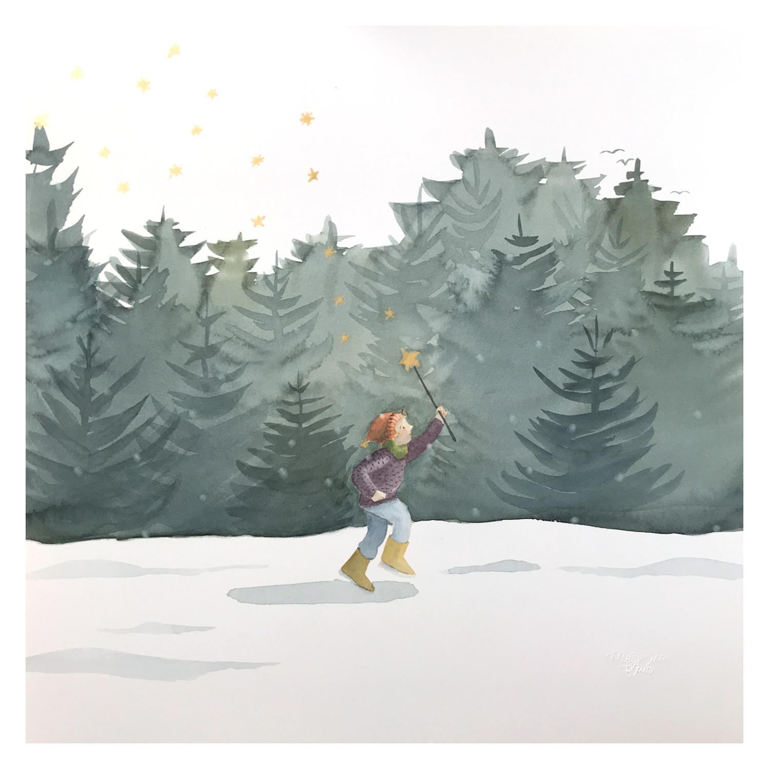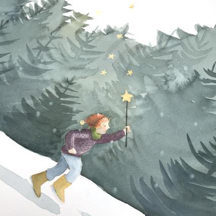Cette œuvre d'art contemporain unique et originale "Lutin des sapins" a été réalisée par l'artiste contemporain Marjoline Fleur.