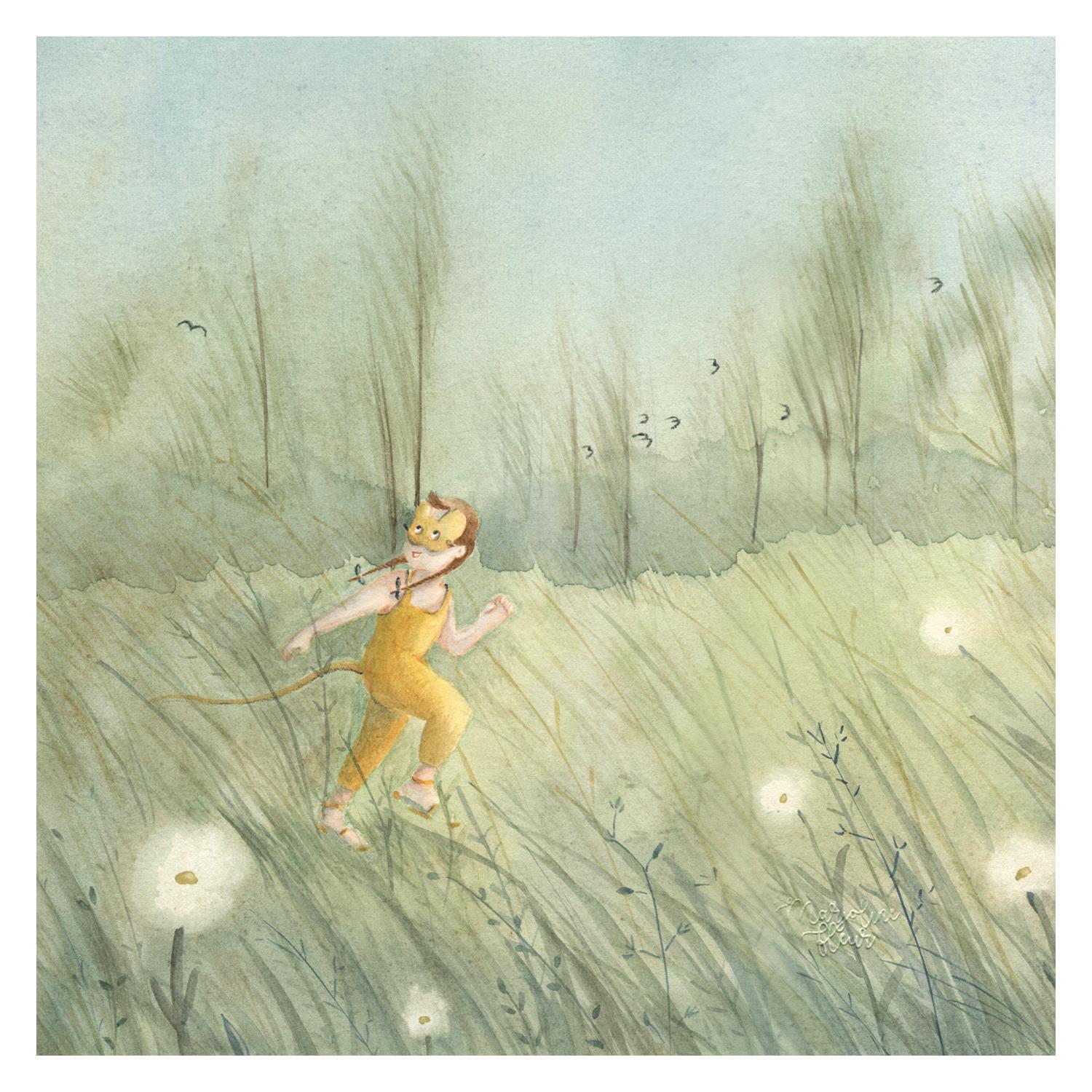 Paysage vert enfant jaunePeinture Paysage vert enfant jaune par Marjoline Fleur | Tableau Art naïf Paysages Aquarelle