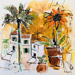L'artiste a utilisé les techniques Collage, Encre, Pastel, Acrylique, Aquarelle pour créer cette peinture petit format sur Toile de style Art naïf sur les thèmes Nature, Paysages.