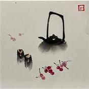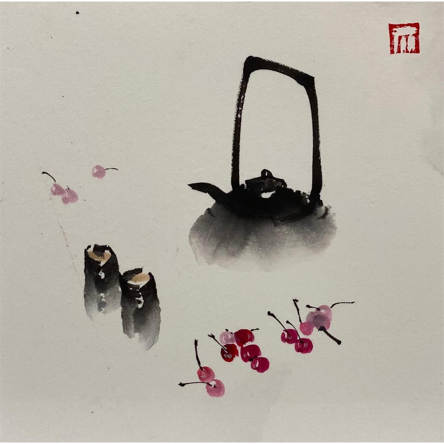 L'artiste a utilisé différentes techniques pour créer cette peinture petit format sur papier de style Art naïf sur les thèmes scènes de vie, minimaliste, noir & blanc.