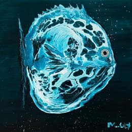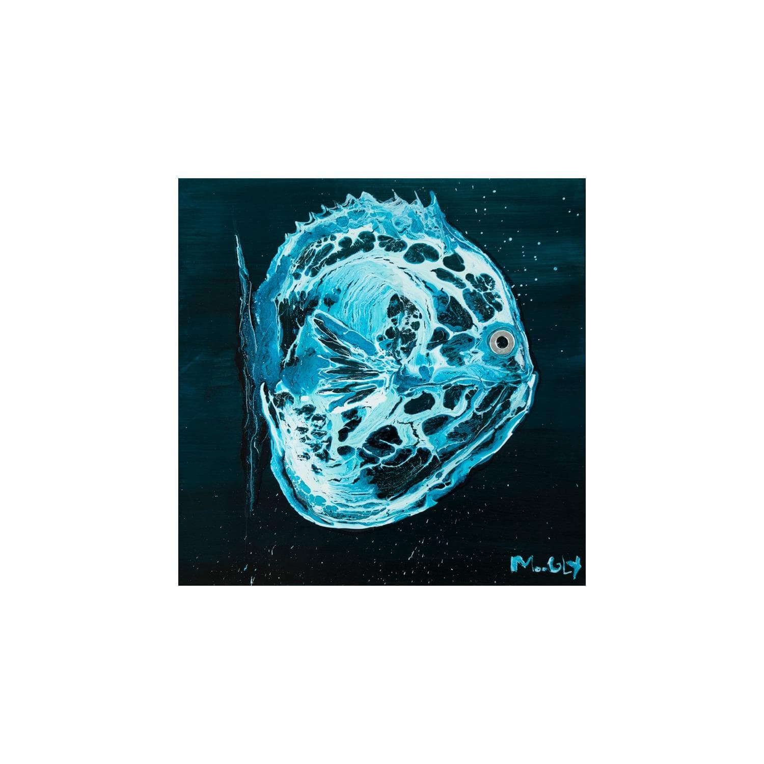 L'oeuvre d'art contemporain Poisson camouflage rondouillard est un tableau moderne de l'artiste Moogly. Il s'agit d'une peinture contemporaine unique et originale de style Illustration