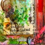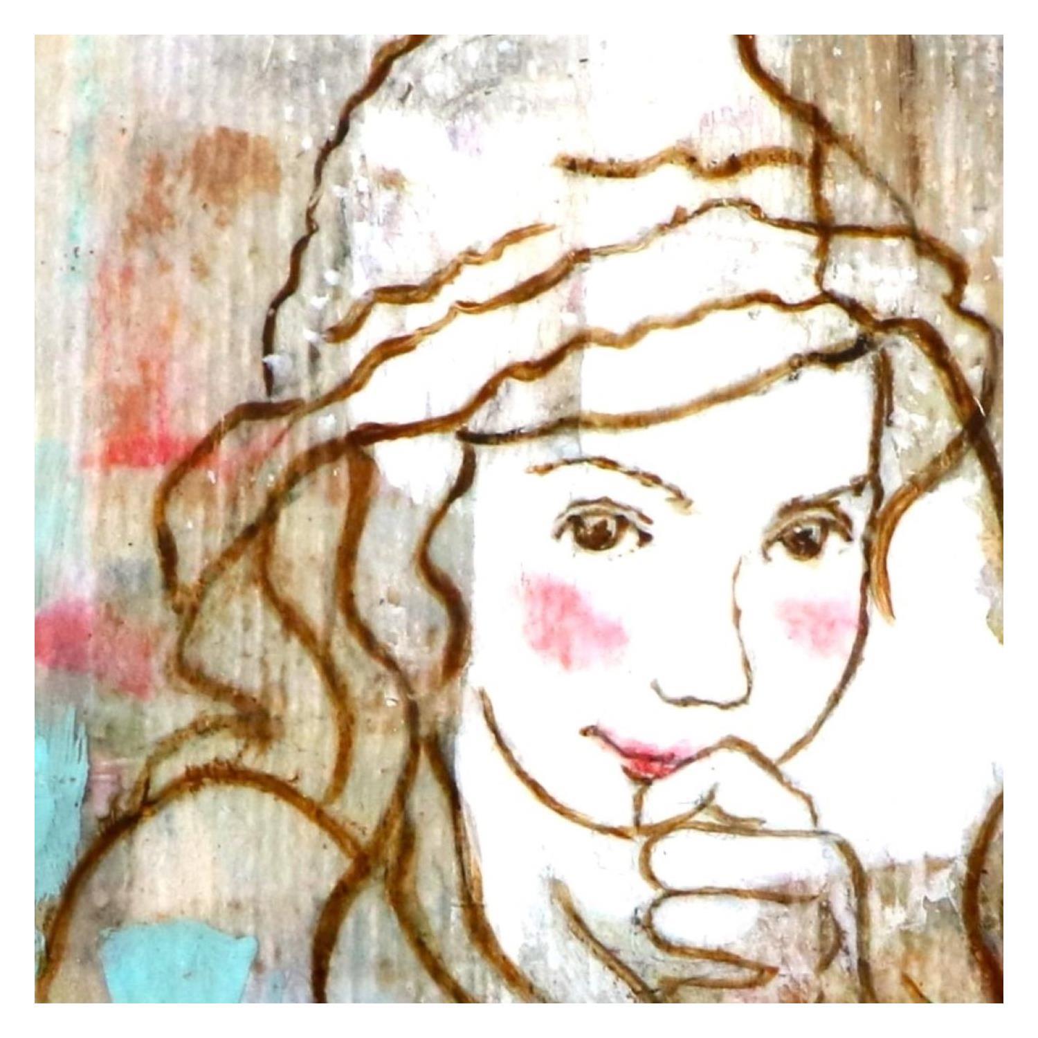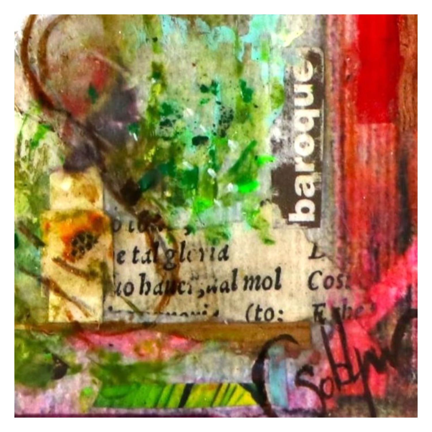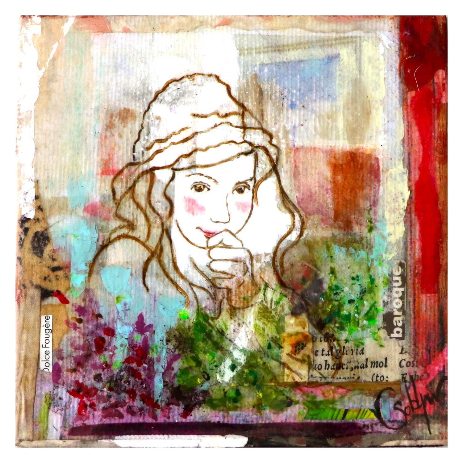 Douce fougère est une Toile sur bois à la technique mixte, l'artiste a utilisé la peinture acrylique, l'encre, le pastel sec, l'estampage, le collage d'art