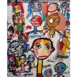 L'artiste a utilisé les techniques Acrylique, Posca, Pastel pour créer cette peinture grand format de style Art Singulier.