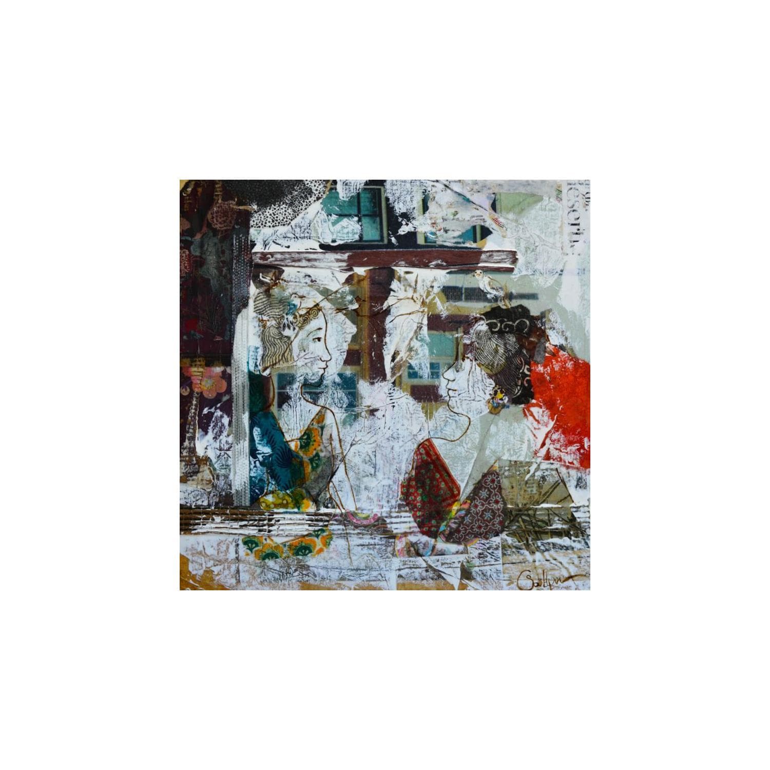 Découvrir les peintures figurative aux techniques multiples de Sablyne : Collage, acrylique...