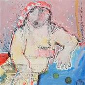 L'artiste a utilisé la technique Acrylique pour créer cette peinture petit format sur papier de style Art Singulier sur le thème scènes de vie.