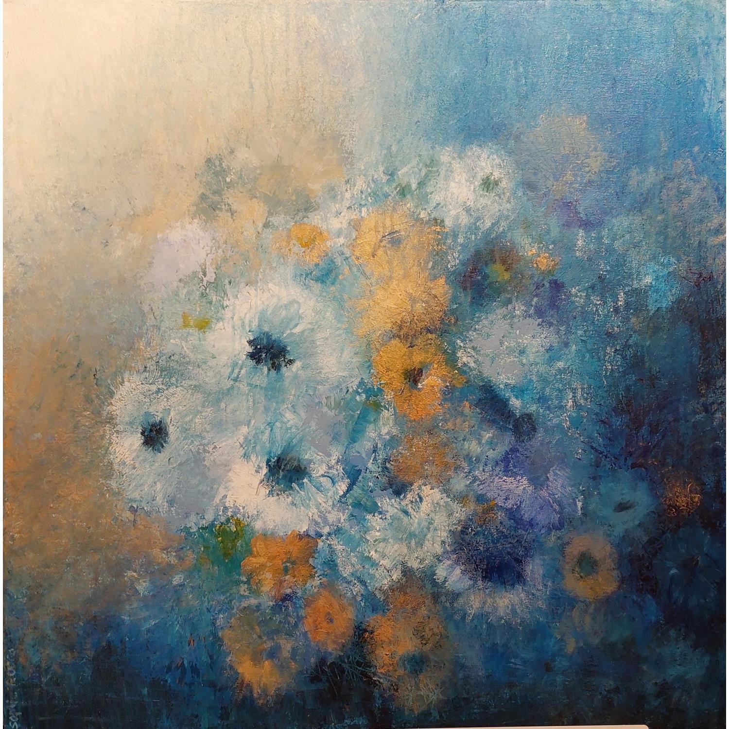 Cette oeuvre d'art contemporain unique et originale "Du bleu floral" a été réalisée par l'artiste contemporain Rocco Sophie.