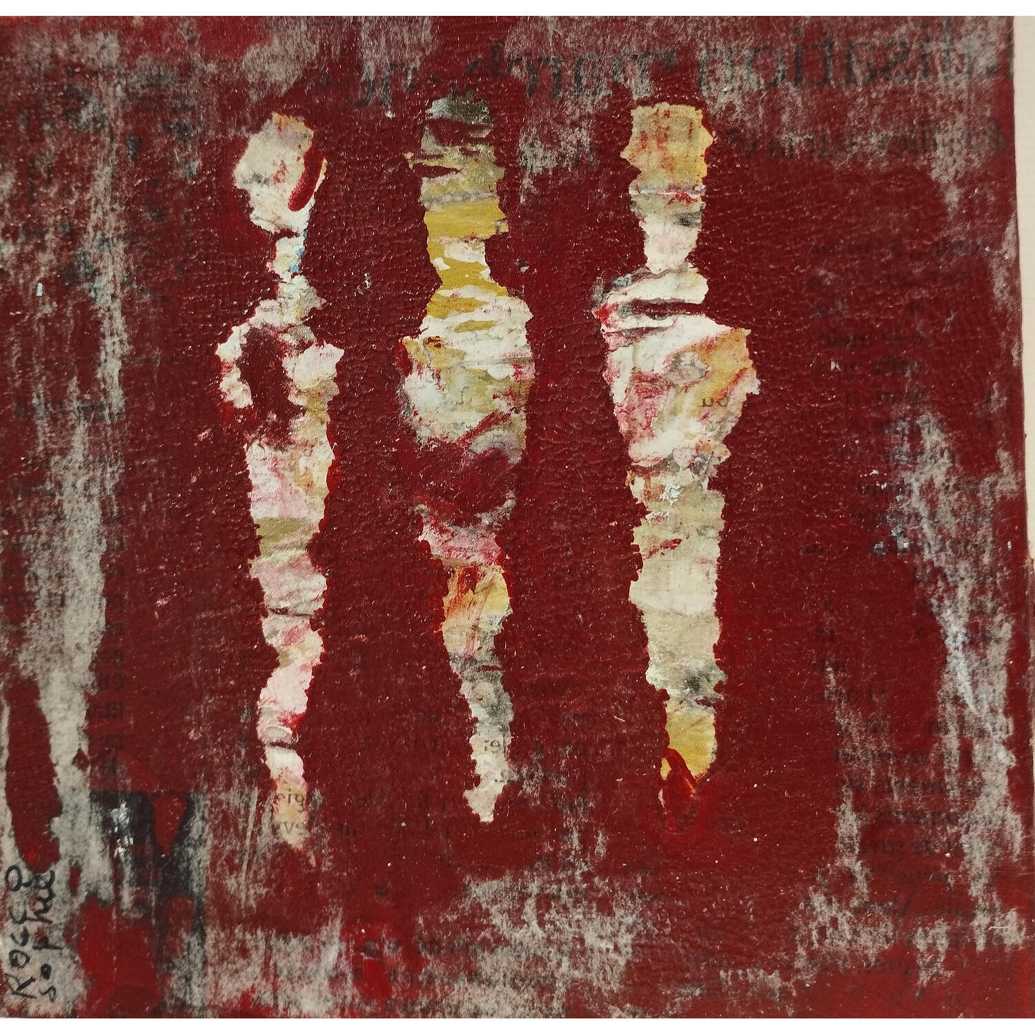 L'artiste a utilisé les techniques Acrylique, Collage, Sable pour créer cette peinture petit format sur Carton toilé de style Art Singulier.