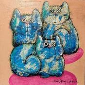 Peinture 3 petits chats par Maury Hervé | Tableau Art Singulier Animaux