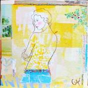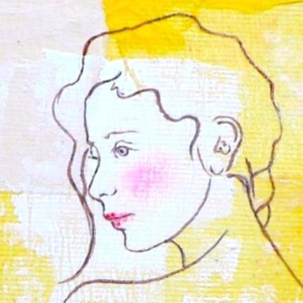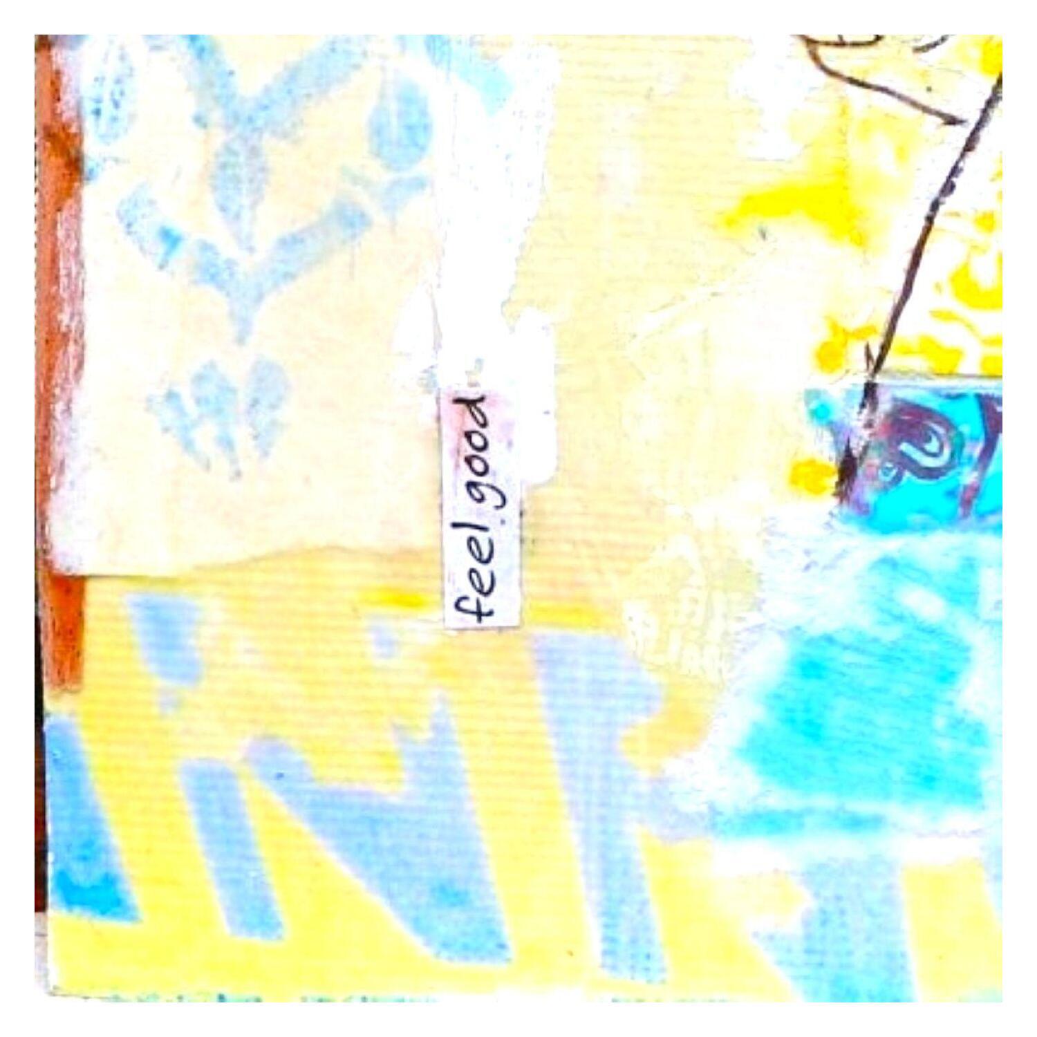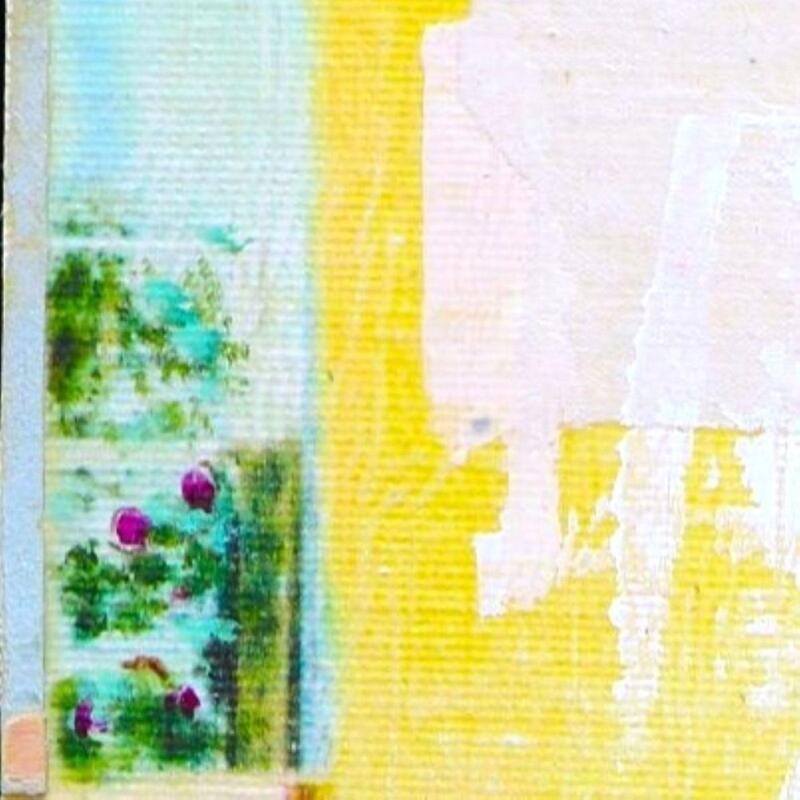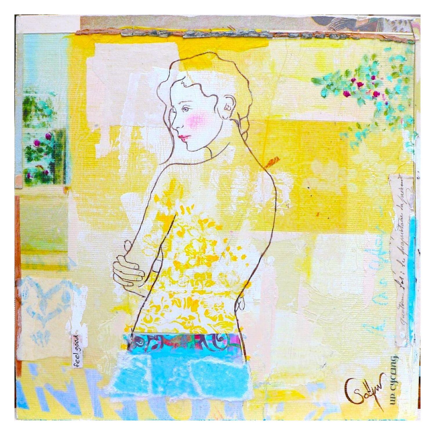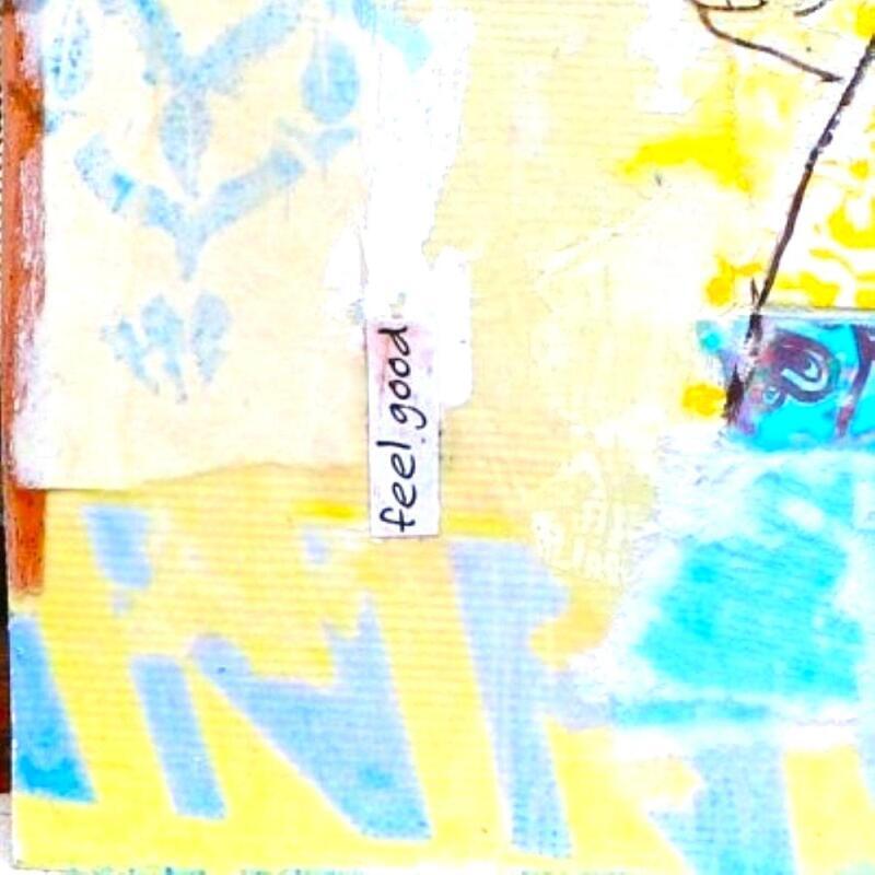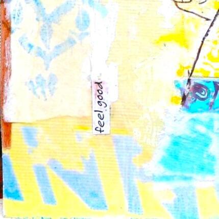 L'artiste a utilisé la technique mixte, Encre, Acrylique, Estampage, Upcycling pour créer cette peinture petit format toile sur Bois de style Art Singulier.