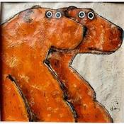 L'artiste a utilisé les techniques Pigments, Sable, Acrylique, Encre pour créer cette peinture petit format sur Papier de style Art Singulier sur le thème Animaux.