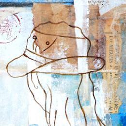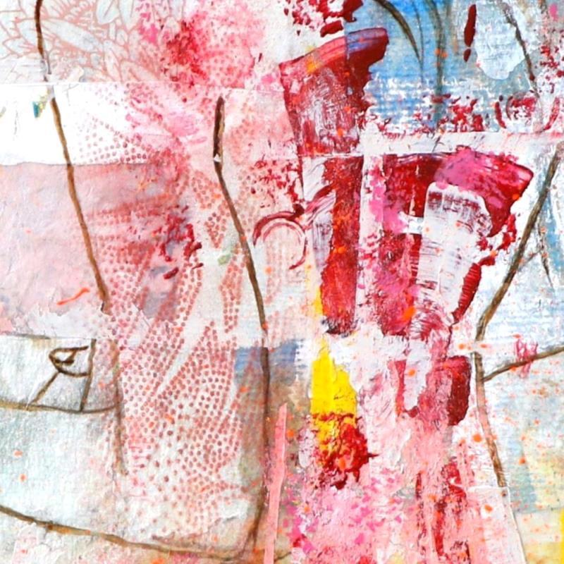 L'artiste a utilisé la technique mixte, Upcycling, pastel sec, Encre, Acrylique pour créer cette peinture petit format sur Bois de style Art Singulier.