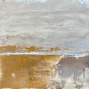 Travailleuse acharnée et passionnée, elle nous entraîne à travers ses mélanges de pigments dans un monde minéral et brut. Ses couleurs métalliques, dorées, cuivrées, rouillées, s’organisent dans un rendu fissuré, craquelé et accidenté, rempli de délicatesse, de poésie et de sérénité.